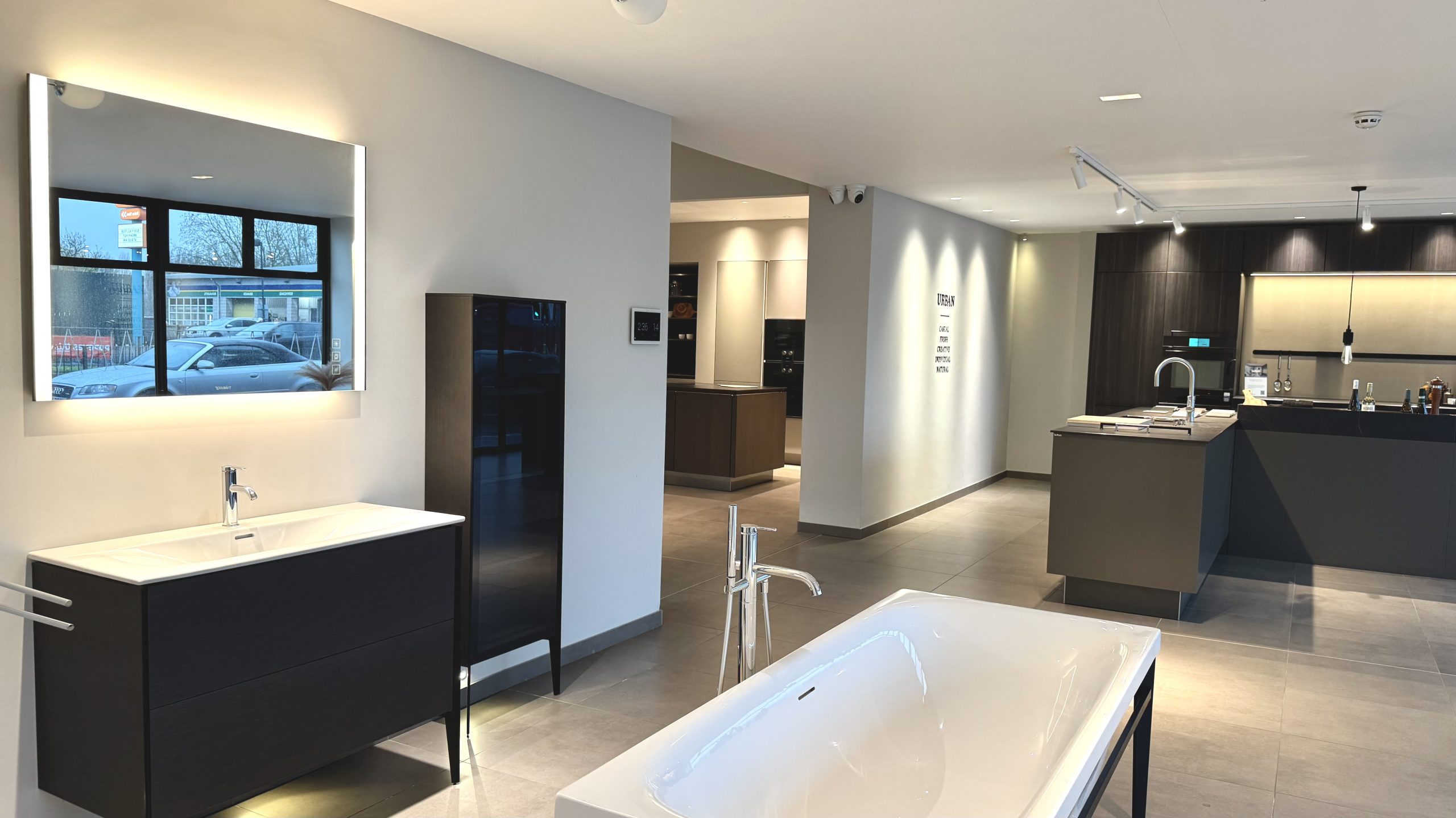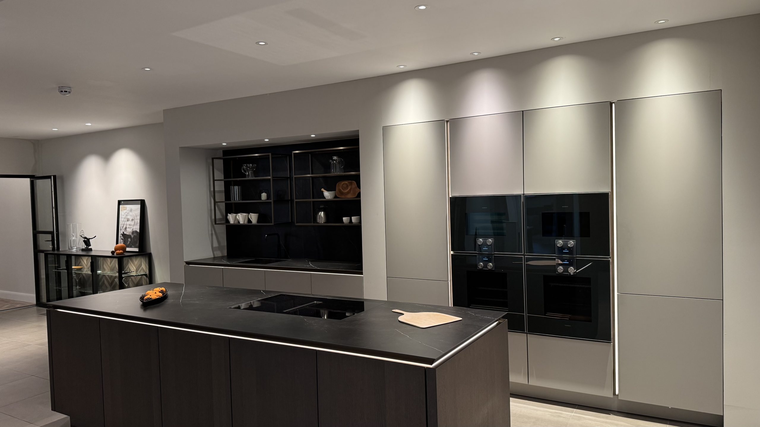 We have a number of new displays in the showroom, with kitchen displays from SieMatic (including the SieMatic SLX kitchen with integrated LED lighting, which you can see below) and a number of bathroom displays featuring brands such as Duravit, Hansgrohe and Axor. Our brand new German bedroom furniture showroom opened in 2024, where visitors will find a number of bedroom displays.
